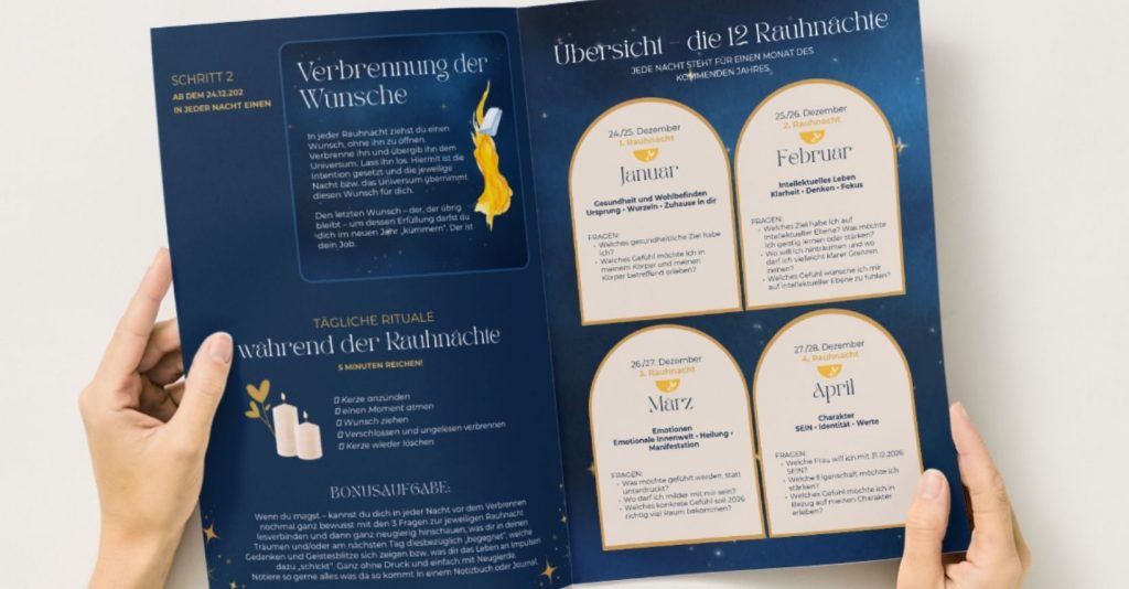 Ich habe für dich einen liebevoll gestalteten Rauhnächte-Guide zusammengestellt, der dich sanft durch diese Zeit begleitet.